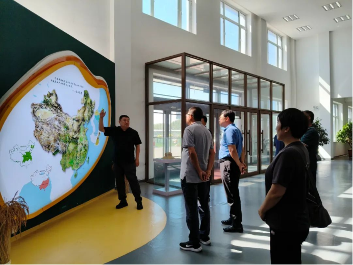 亢锦波书记一行首先参观了普田种业集团农展馆,认真听取了集团发展历程的介绍,重点了解了常规水稻、大豆、玉米等主要品种的特征特性,以及相关品种的研发创新、市场推广与销售情况。