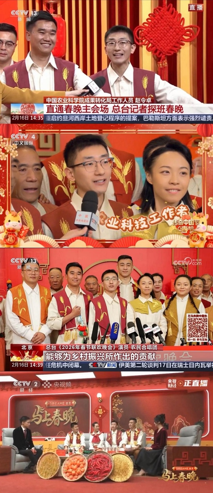 今年,中央广播电视总台春晚再次将镜头对准新时代的奋斗者,邀请7位全国的“三农”工作者代表站上舞台,传递平凡日常的光芒与能量。中国农业科学院成果转化局赵令卓参与歌曲《来晒秋》《山海寻梦》的演出,和凤凰传奇、廖昌永、谭维维等歌手同台,并作为各行业优秀代表与全球观众共同迎接新春钟声的敲响。