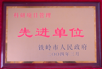 2004年铁岭市政府授予“科研项目管理先进单位”